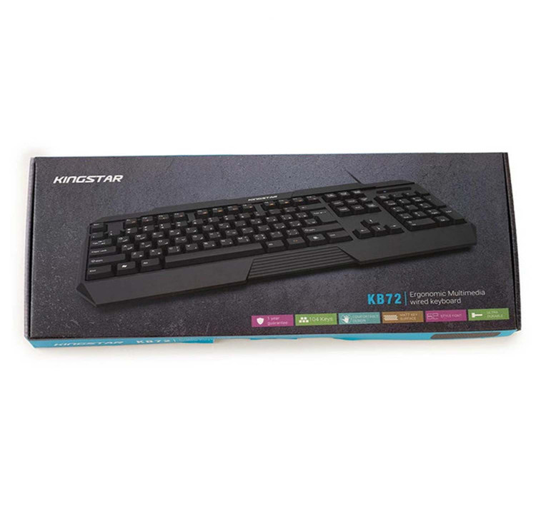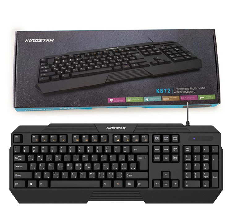 کیبورد «KB72» محصولی از شرکت «کینگستار» است که به صورت باسیم و از طریق درگاه USB به کامپیوتر متصل میشود. این کیبورد دارای 104 کلید برای انجام فعالیتهای کامپیوتری است؛ همچنین کیبورد KB72 دارای 14 کلید میانبر برای انجام سریعتر کارهاست که در قسمت بالایی کیبورد قرار گرفتهاند. کیبورد کینگستار مدل KB72 برای استفادههای روزمره و اداری میتواند گزینهی مناسبی باشد. شرکت کینگستار این محصول را برای کاربران فارسیزبان طراحی کرده و به همین منظور کلیدهای آن را به برچسب چاپی فارسی تجهیز کرده است. کلیدهای این کیبورد در فاصلهی مناسبی از هم قرار گرفتهاند که این ویژگی باعث بیشترشدن سرعت تایپ و راحتی کاربر هنگام استفاده میشود. اگر قصد تهیهی یک کیبورد برای استفادههای اداری و خانگی را دارید، KB72 میتواند انتخاب مناسبی برای شما باشد.