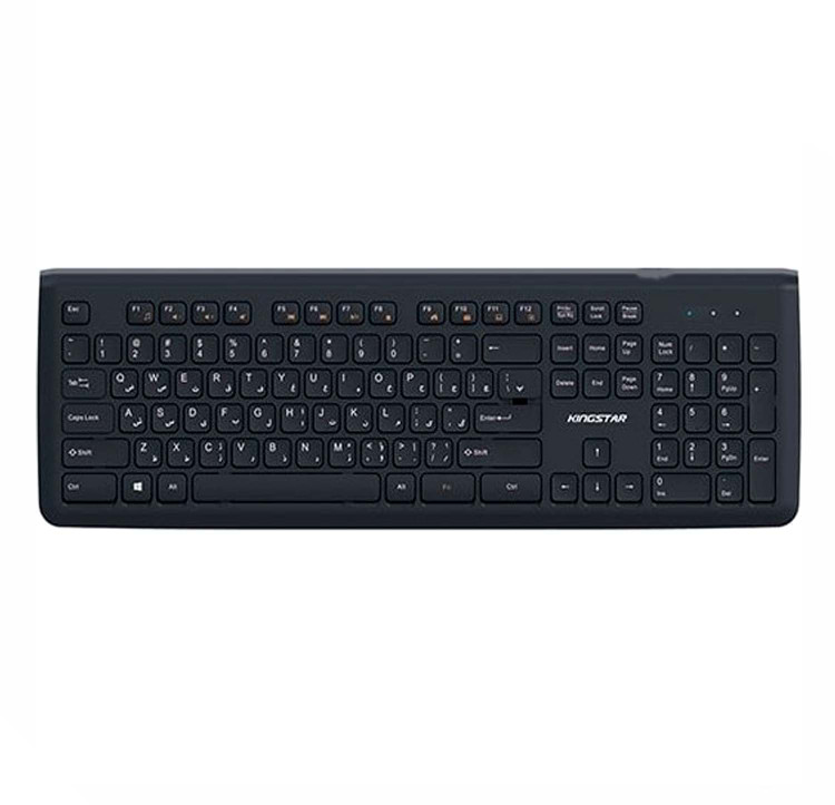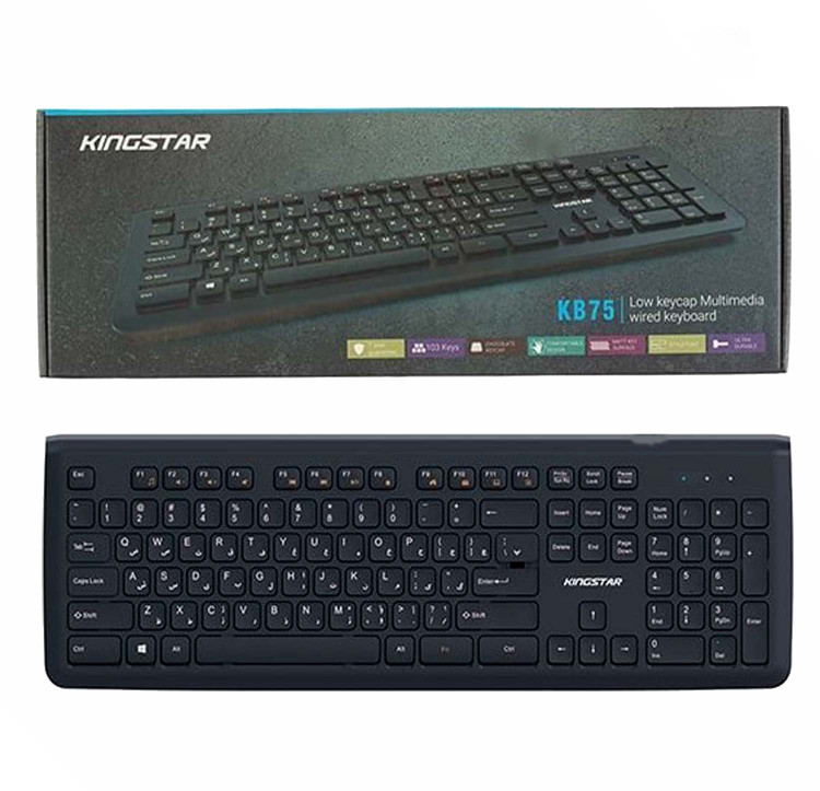 کیبورد کینگ استار مدل kb75 از نوع بی سیم میباشد و از طریق دانگل USB به کامپیوتر متصل میشود. این کیبورد دارای 103 کلید برای انجام فعالیتهای کامپیوتری است. همچنین کیبورد kb75 دارای 20 کلید میانبر به منظور انجام سریعتر کارهاست که عبارتند از Music, Volume +-, Nex Track, Pre. Track, Play/Pause, Stop, Web Home, email, My Computer, Favorite. کیبورد کینگ استار مدل kb75 برای استفادههای روزمره مناسب میباشد. از دیگر ویژگیهای این کیبورد محصول کمپانی کینگ استار، طراحی کلیدها به گونهای که امکان تایپ کردن در مدت زمانی طولانی را فراهم می کند، دسترسی راحت به تمامی کلید های کاربردی، طراحی نرم و سایلنت کلید ها، با دوام و دارای کلید های مات میباشد.