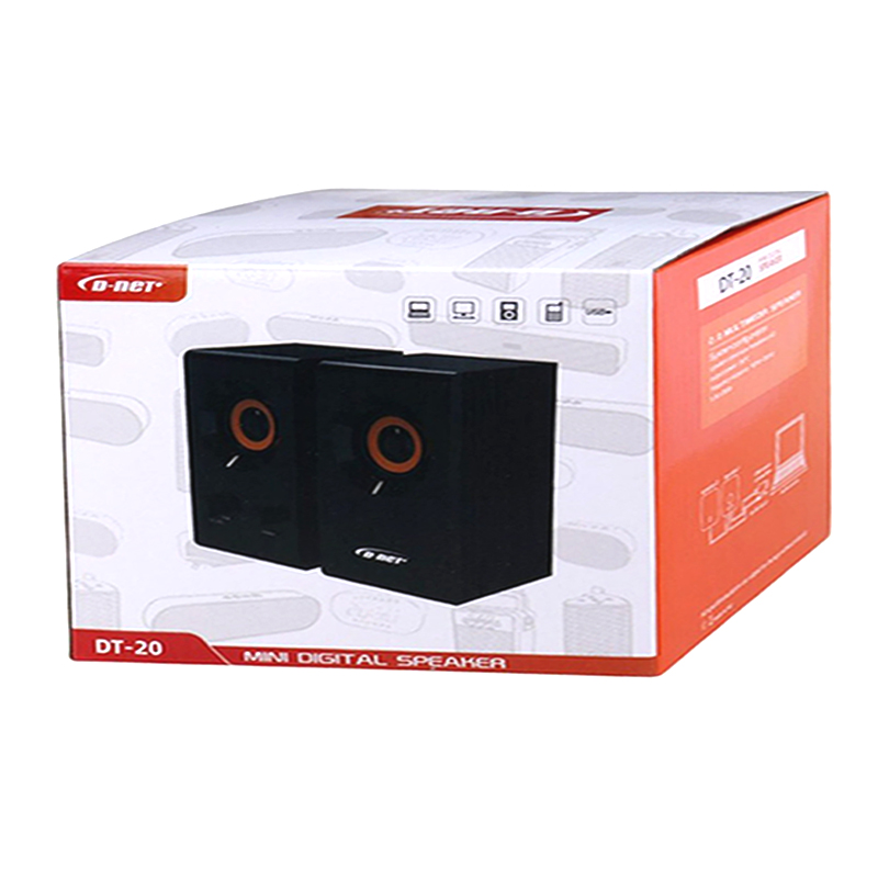 اسپیکر دو تکه دی نت مدل DT-20 توسط کابل به سیستم متصل شده و بدون نویز و با کیفیت اصلی با توان 10 واتی را به شما ارائه میدهد ابعاد کوچک اسپیکر دو تکه دی نت مدل DT-20 موجب شده که به راحتی روی میز قرار گیرد و قابل حمل باشد