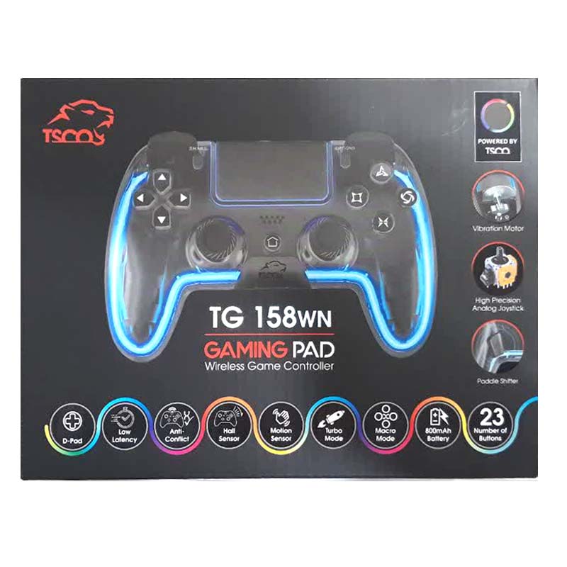 گیم پد تسکو مدل TG 158 WN یک کنترلر بیسیم همهکاره است و دارای دکمهها و بدنه دارای نورپردازی LED هستند که در هنگام استفاده، یک جلوهی نورانی زیبا ایجاد میکنند.دکمههای این گیم پد با فشار فعالسازی 60 گرم به گونهای طراحی شدهاند که با کوچکترین حرکت، واکنش سریعی را به کاربر ارائه دهند. این گیم پد با پلتفرمهای مختلفی از جمله پلیاستیشن 4 (PS4)، پلیاستیشن 3 (PS3)، رایانههای شخصی، دستگاههای اندروید و iOS سازگار است.این بدان معناست که شما میتوانید از این گیم پد برای بازی بر روی انواع دستگاهها بدون نگرانی استفاده کنید.این ویژگی به خصوص برای افرادی که از چندین دستگاه مختلف برای گیمینگ استفاده میکنند، بسیار مفید و کاربردی است.علاوه بر این، TG 158 WN به طور خودکار دستگاههای مختلف را شناسایی کرده و به آنها متصل میشود، که این ویژگی باعث سهولت بیشتر در استفاده و تغییر بین دستگاههای مختلف میشود.یکی از ویژگیهای برجسته این گیم پد، برخورداری از شوک دوگانه است که با ایجاد لرزش در هنگام رویدادهای خاص بازی، تجربهای واقعگرایانهتر و هیجانانگیزتر برای گیمرها فراهم میکند.این لرزشها با دقت و شدت متفاوت بسته به نوع بازی و رویداد در حال وقوع تنظیم میشوند و به شما امکان میدهند تا حس بیشتری از بازیها دریافت کنید.