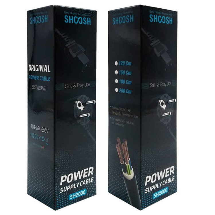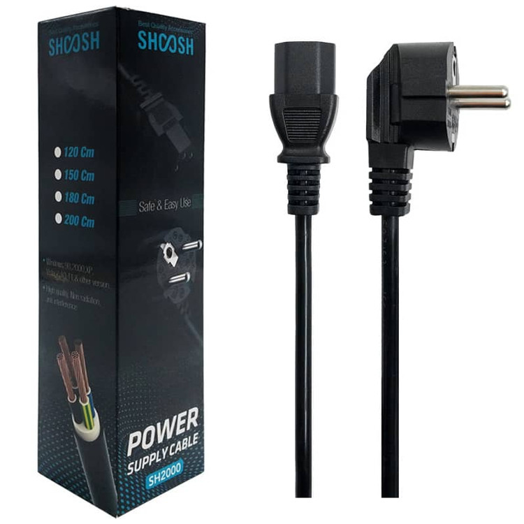 کابل برق سه پین منبع تغذیه شوش مدل SH200 کابلی با کیفیت و طول استاندارد برای اتصال به پاور کامپیوتر یا مانیتور کامپیوتر شماست. این محصول با طول 150 سانتی متر، به خوبی میتواند نیاز شما را پاسخگو باشد. این کابل برق کامپیوتر، یک رابط از نوع دوشاخه می باشد که در پریز های معمولی و استاندارد ایرانی قابل استفاده است و برق را با جریان عبوری 10 تا 16 آمپر و ولتاژ 250 به کامپیوتر می رساند. این محصول دارای روکشی انعطاف پذیر از جنس پلاستیک بوده و سیم های داخلی کابل نیز از مس ساخته شده اند. این کابل برق 1.5 متری از کیفیت بالایی برخوردار است و برای تمامی سیستم عامل ها قابل استفاده است.