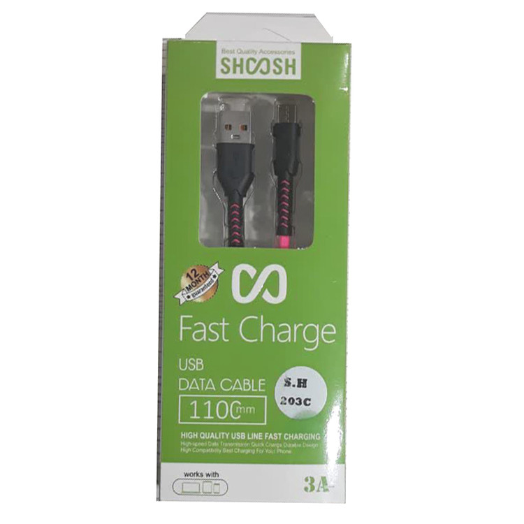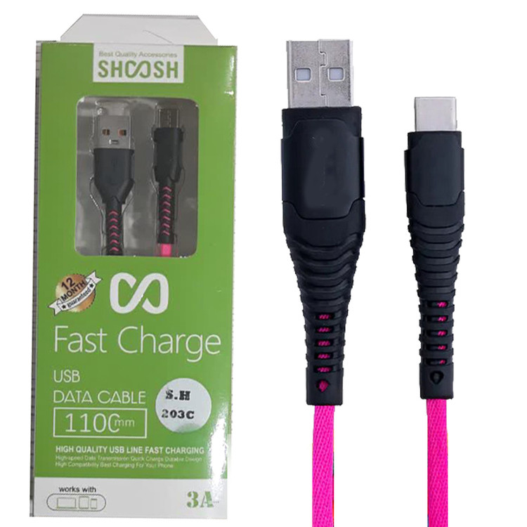 کابل شارژ تایپ سی شوش SHOOSH SH-203C 3A 110CM برای دستگاه هایی که مجهز به پورت تایپ سی به خصوص گوشی های شیائومی مناسب است. شدت جریان عبوری در کابل تایپ سی شوش مدل SH-203C مقدار 3 آمپر است دارای سرعت انتقال داده بالایی است.به طور کلی کابل فست شارژ تایپ سی SHOOSH SH203C از کانتکتورهای بسیار مقاوم برخوردارند که همین امر مانع از خوردگی و زنگ زدگی آن می شود.جنس این کابل تایپ سی از PVC بوده و در چند رنگ چذاب به بازار عرضه شده است. طول آن 110 سانتی متر است .