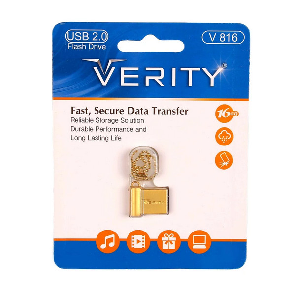 فلش مموری وریتی مدل V816 ظرفیت 16 گیگابایت با بدنه فلزی در برابر شوک و لرزش مقاومت دارد.از پورت USB 2.0 پشتیبانی می کند و می تواند تا حداکثر سرعت 480 مگابیت بر ثانیه اطلاعات را انتقال دهد و مناسب برای ذخیره سازی و انتقال اطلاعاتی نظیر موسیقی، فیلم، عکس و … می باشد. این مدل فلش مموری دارای بندآویز زنجیری بوده که به شما این امکان را می دهد که آن را به راحتی همیشه همراه خود داشته باشید.