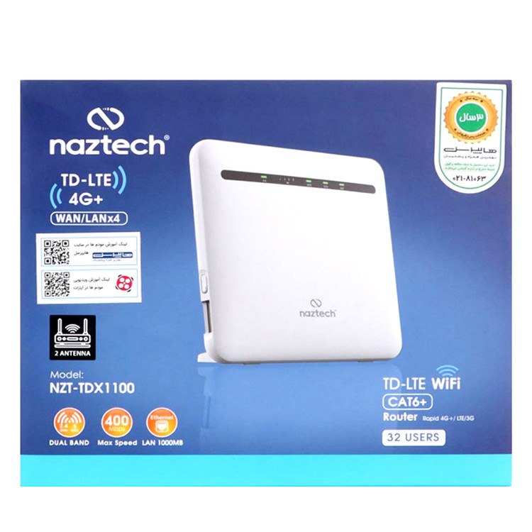 مودم نزتک NZT TDX1100 با طراحی زیبا و عملکردی قدرتمند، یکی از پرسرعتترین مودمهای سیم کارتخور موجود در بازار است. این مودم جدید نزتک با پشتیبانی از شبکههای TDLTE، 4G+، 4G و 3G و قابلیت دو بانده (2.4 و 5 گیگاهرتز)، تجربهای بینظیر از اینترنت پرسرعت و پایدار را برای کاربران خانگی و حرفهای فراهم میکند. با سرعت آپلود تا 70 مگابیت بر ثانیه و دانلود تا 400 مگابیت بر ثانیه، این مودم به انتخابی ایدهآل برای کاربران حرفهای تبدیل شده است. همچنین، مودم NZT TDX1100 از Cat6+ پشتیبانی میکند که سرعت دانلود و آپلود بالاتری را ارائه میدهد.کاربر: – کاربرانی که به دنبال بهترین مودم TDLTE بازار ایران هستند. – افرادی که به اینترنتی پرسرعت و پایدار با جدیدترین تکنولوژی روز دنیا نیاز دارند. – کسانی که به دنبال یک مودم رومیزی با طراحی زیبا و حرفهای هستند. – کسانی که نیاز به سرعت و کارایی بالا دارند و به دنبال Cat6+ برای افزایش سرعت انتقال دادهها هستند.