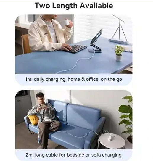 طول ۲ متری کابل به شما آزادی عمل بیشتری میدهد و استفاده از آن را در محیطهای مختلف مثل خانه، محل کار یا حتی سفر بسیار راحت میکند. طراحی این کابل بر اساس استانداردهای سختگیرانه انجام شده و به لطف استفاده از مواد اولیه مقاوم، در برابر کشش، خم شدن و آسیبهای روزمره مقاومت بالایی دارد. این کابل در دو رنگ مشکی و سفید عرضه میشود که هر دو ظاهری شیک و مدرن دارند و به راحتی با سایر لوازم جانبی شما هماهنگ میشوند.