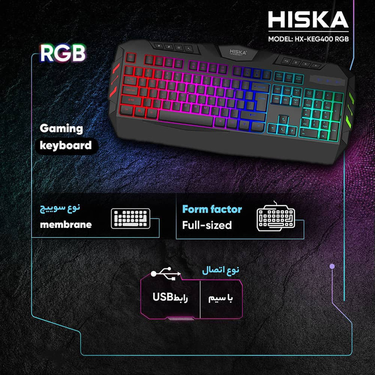 کیبورد سیم دار گیمینگ هیسکا (HISKA) مدل HX-KEG400 (گارانتی 12 ماهه هیسکا سرویس)