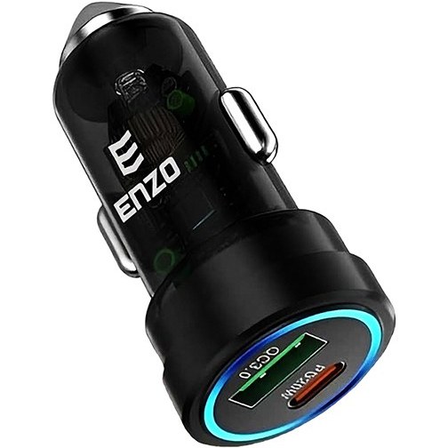 شارژر فندکی انزو مدل F-220 مجهز به یک درگاه خروجی Type-C و یک عدد پورت خروجی USB با توان خروجی 38 وات بوده و بدنه ساخته شده از پلاستیک با کیفیت، مقاوم در برابر صدمات فیزیکی همچون فشار و ضربه می باشد. مجهز به تکنولوژی PD با محدوده ولتاژ ورودی 12 الی 24 ولت و مقاومت بالا در برابر اتصال کوتاه و نوسانات جریان الکتریکی و مقاوم در برابر دمای بالا می باشد. این شارژر دارای نورپردازی حلقه ای به رنگ آبی می باشد.