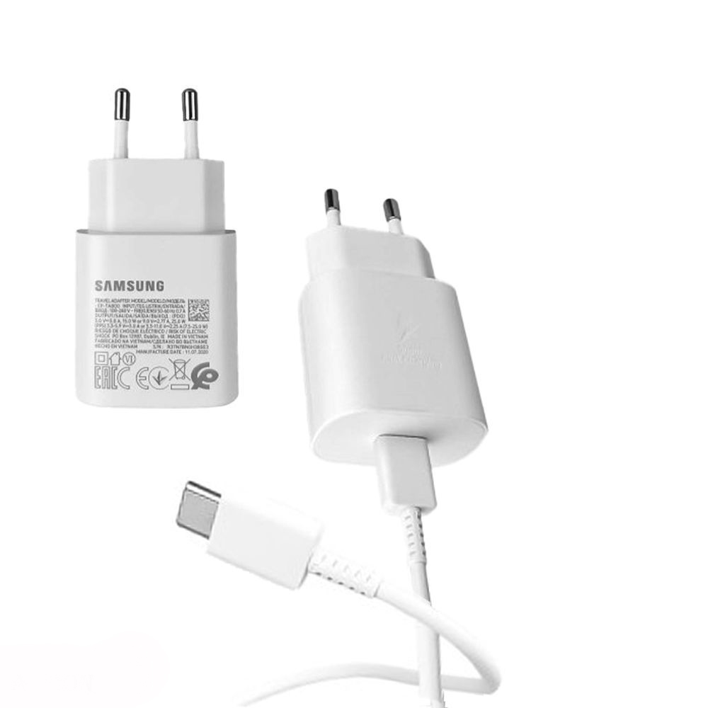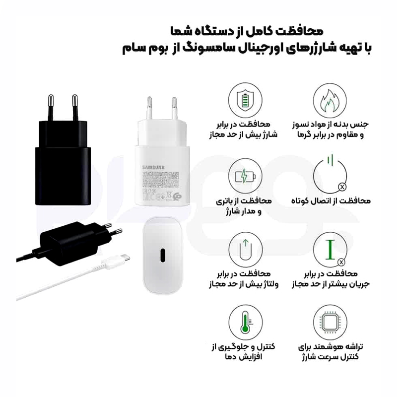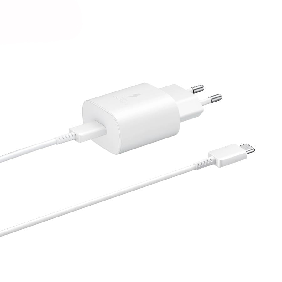شارژر گوشی 25 وات سامسونگ با کابل دو سر Type C سفید اورجینال صد در صد ( گارانتی 6 ماهه پاریان پایا)
