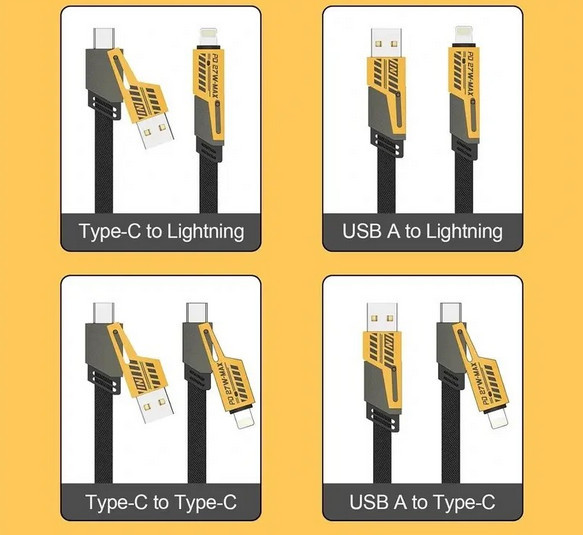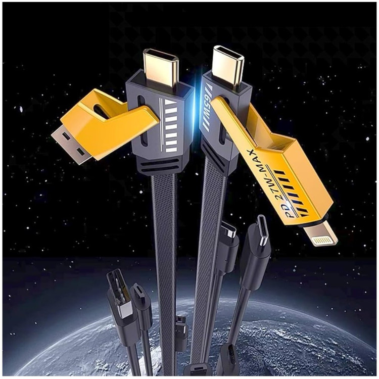 - 4 کانکتور کاربردی در یک کابل: Lightning (آیفون)، Type-C، Micro USB و USB برای شارژ و انتقال دیتا