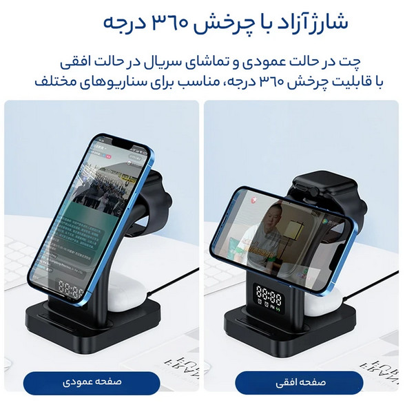 - دارای چراغ خواب شارژ گوشی ، ساعت هوشمند و ایرپادز