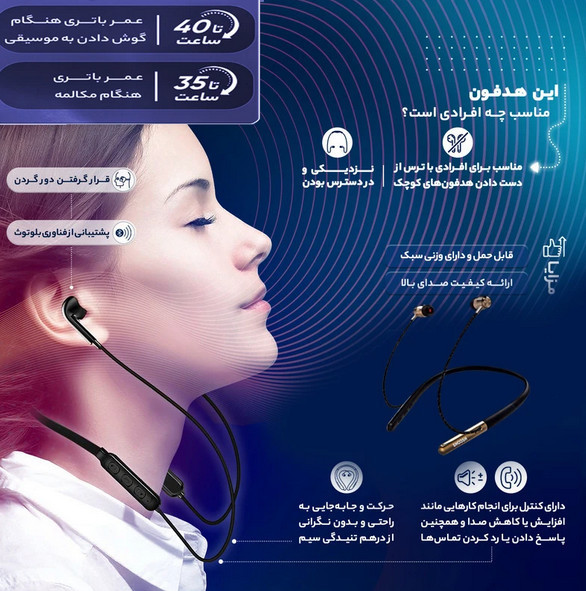 هندزفری بلوتوثی گردنی شوش مدل SHOOSH SH27 با طراحی گردنی و ویژگیهای منحصر به فرد، تجربهای جدید از گوش دادن به موسیقی و مکالمه را به شما ارائه میدهد. این هندزفری با باتری بزرگ و اتصال بیسیم، راحتی و کارایی را به همراه دارد. دارای دو دو بلندگو با کیفیت صدای بالا و صدای استریو. دارای کنترلهایی برای تنظیم صدا، پخش موسیقی و مکالمه.کنترلهایی برای تنظیم صدا، پخش موسیقی و مکالمه.