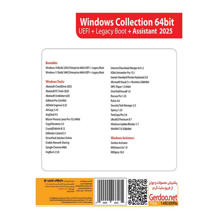 این محصول شامل آخرین نسخه از ویندوز 10 و 11 سرویس پک 1 آپدیت گردو در ویرایشهای 32 و 64 بیتی با اتوران اختصاصی گردو به همراه راهنمای نصب فارسی است. همچنین در این محصول، آخرین نسخه از نرم افزار ASSISTANTr جهت شناسایی و نصب خودکار درایورهای سخت افزاری بر روی ویندوز 10 و 11 قرار داده شده است.Windows 10 جدیدترین نسخه سیستم عامل ویندوز است که منتشر و جایگزین Windows 8.1 شده است.Windows 10 با قابلیتهای فراوان و جدید خود میتواند بار دیگر موفقیت Windows XP و Windows 7 را برای مایکروسافت به ارمغان بیاورد. تغییرات گسترده و بسیاری در Windows 10 انجام شده به طوری که این نسخه از ویندوز را تبدیل به یک عضو جدید خانواده Windows کرده است.
