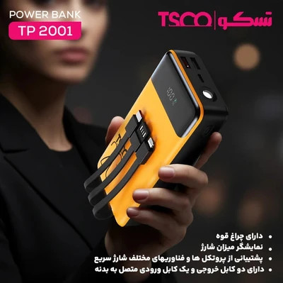 پاوربانک تسکو مدل TP 2001 با ظرفیت 20000 میلیآمپر ساعت یکی از پرفروشترین ظرفیتها در بازار است. این مدل با پشتیبانی از شارژ سریع 22.5 وات، کابلهای داخلی و نمایشگر دیجیتال، یک گزینه کاربردی برای استفاده روزمره و سفر محسوب میشود.