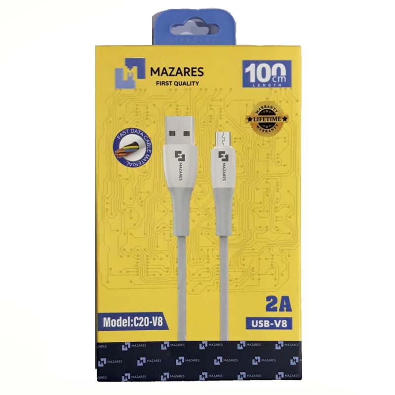 کابل فست شارژ MICRO USB مازارس برای دستگاه هایی که مجهز به پورت میکرو یو اس بی هستند،مناسب است. شدت جریان عبوری در کابل میکرو مازارس مدل C20-V8 مقدار 2 آمپر است.دارای سرعت انتقال داده بالایی است.به طور کلی کابل فست شارژ Micro USB مازارس از کانتکتورهای بسیار مقاوم برخوردارند که همین امر مانع از خوردگی و زنگ زدگی آن می شود.جنس این کابل از PVC بوده و طول آن 100 سانتی متر است .
