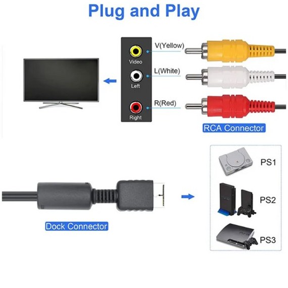 انتقال صدا و تصویر - دارای نویز گیر - دارای طول یک متر و هشتاد سانتی متر - دارای RCA (سه فیش صدا و تصویر) - پشتیبانی از انتقال صدا - خروجی Play Station