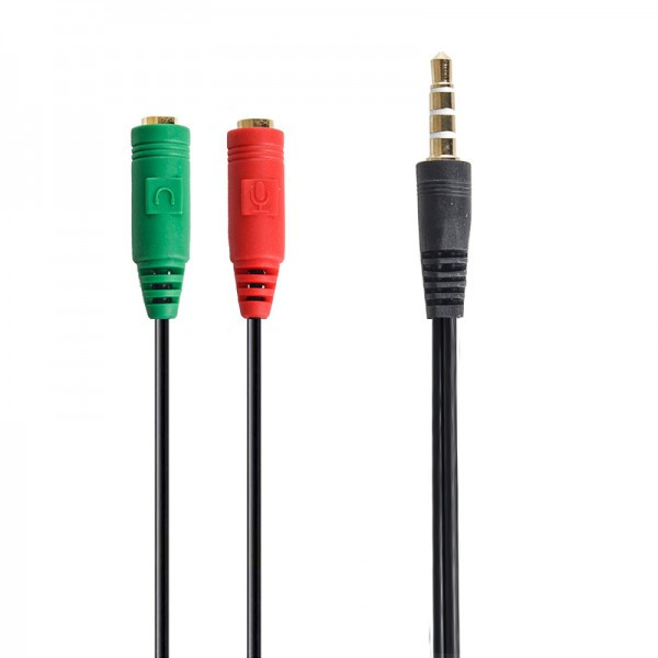 قابلیت : اتصال به دو دستگاه به طور همزمان کابل تبدیل 2 به 1 صدا برای برخی از لپتاپهای جدید که فاقد دو پورت صدای جداگانه ورودی صدای میکروفن و خروجی صدا برای هدفون و اسپیکر هستند، برای تفکیک 1 به 2 جک صدا و اتصال همزمان 2 جک نری 3.5 میلیمتری میکروفن و فیش AUX هدفون به این ورودی-خروجی صدا روی لپتاپهای جدید باید از کابل تفکیک 2 به 1 جک صدا استفاده کرد تا تک فیش تبدیل به 2 فیش جداگانه شود. در لپتاپهای جدید دیگر خبری از 2 جکی 3.5 جداگانه برای میکروفن و هدفون نیست. لپتاپهای تازه و نوین تنها دارای یک جک صدا هم برای میکروفن و هم برای هدفون یا اسپیکر هستند. دشواری از آنجا آغاز میشود که هدفون و هدستهای قدیمی و موجود در بازار دارای 2 فیش جداگانه میکروفن و هدفون هستند. در واقع یک فیش نری AUX برای هدفون و یک فیش نری AUX برای میکروفن. در نتیجه باید برای این کار راهحلی اندیشید. برای حل این مشکل طبق معمول باید به سراغ مبدلها رفت. تبدیل 2 به 1 هدفون و میکروفن بهترین گزینه برای اینکار است. این کابل تبدیل دارای دو مادگی AUX سرکابلی جهت اتصال فیش نری AUX میکروفن و هدفون بوده و در سر دیگر دارای یک فیش نری AUX سه خط جک 3.5 میلیمتری با 4 خط است. دو مادگی ورودی برای وارد کردن فیشهای میکروفن و هدفون دستگاه هدست است و فیش نری برای اتصال به جک لپتاپ. تبدیل 2 به 1 صدا دارای یک کانکتور 3 خط است. یکی از این خطوط مربوط به کانال مشترک صدا میان میکروفن و هدفون است و یک خط مربوط به کانال سمت راست و یکی دیگر مربوط به کانال سمت چپ. واپسین خط و خط چهارم نیز مروبوط به ورودی صدای میکروفن است.