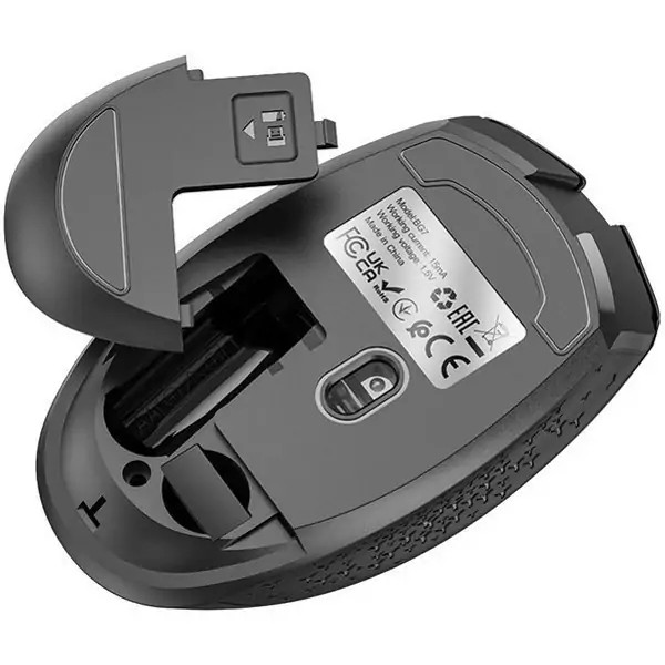 ماوس بی سیم هوکو مدل GM14 دارای ظاهری زیبا و شیک می باشد که نوع دکمه در این موس بلوتوث هوکو به صورت 3 بعدی می باشد. در قسمت رویی موس هوکو، دو کلید کلیک چپ و راست و در میان آن ها مانند باقی موس ها، کلید اسکرول را مشاهده می کنید. کلید اسکرول نیز خود دارای قابلیت یک کلیک می باشد. در قسمت زیرین نیز دو محفظه جداگانه برای قرار دادن باتری و دانگل موس تعبیه شده است. شما فقط با تهیه یک باتری می توانید انرژی آن را تأمین کنید.ماوس بی سیم هوکو مدل GM14 با فرکانس 2.4 گیگاهرتز که با یک گیرنده بی سیم(دانگل USB) ارائه می شود ، به یکی از درگاه های USB دستگاهی که به آن متصل هستید ، ارائه می شود. پس از اتصال آن را روشن کرده و با موس کار کنید. به همین سادگی و به دلیل استفاده از فناوری Plug And Play نیازی به نصب هیچ درایوری نیست.