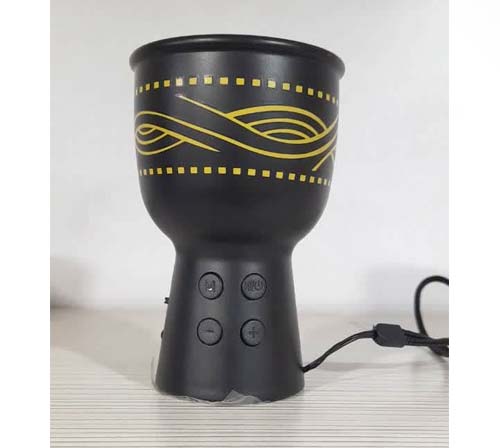 اسپیکر شارژی طرح تنبک با پنل خورشیدی و قابلیت 4 ساعت نگه داری شارژ طراحی و تولید شده است.قابل اتصال به بلوتوث و کارت حافظه و فلش می باشد.همچنین دارای یک بند آویز مچی برای حمل آسان تر و یک چراغ قوه کوچک نیز می باشد.