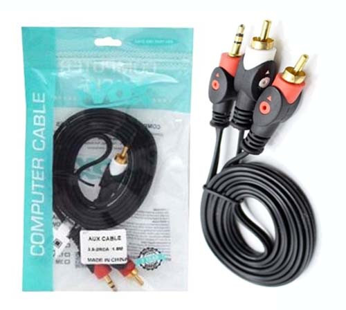 این کابل بصورت یک فیش جک 3.5 میلیمتری به 2 سوکت RCA می باشد و سر تکی آن یک فیش سوزنی AUX که به خروجی هدفون، لپتاپ و کامپیوتر و یا موبایل و دو سر دیگر آن که RCA نام دارد، به انواع اسپیکر و پخش کننده ها یا دستگاه سینمای خانگی و … متصل میشود.