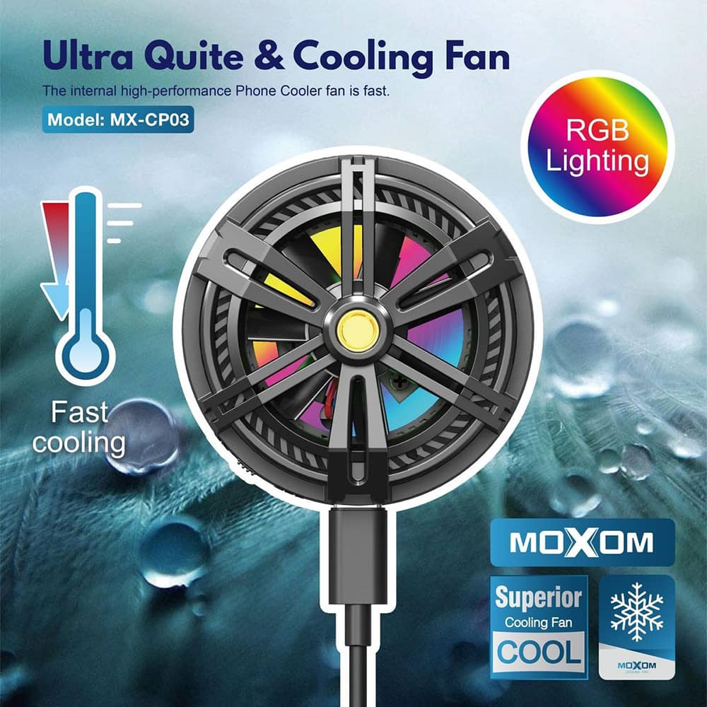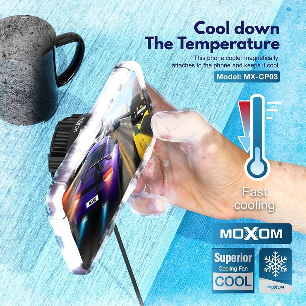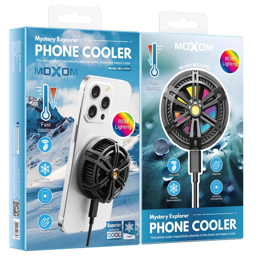 فن خنک کننده رایاتوری MOXOM MX-CP03 با خنکسازی سریع با استفاده از تکنولوژی پیشرفته رادیاتوری.نصب مغناطیسی آسان و بدون نیاز به چسباندن مستقیم به دستگاه و سازگاری جهانی با تمام دستگاههای موبایل طراحی شده است.دارای دماسنج برای نظارت دقیق بر دمای دستگاه بوده و سبک و قابل حمل می باشد.