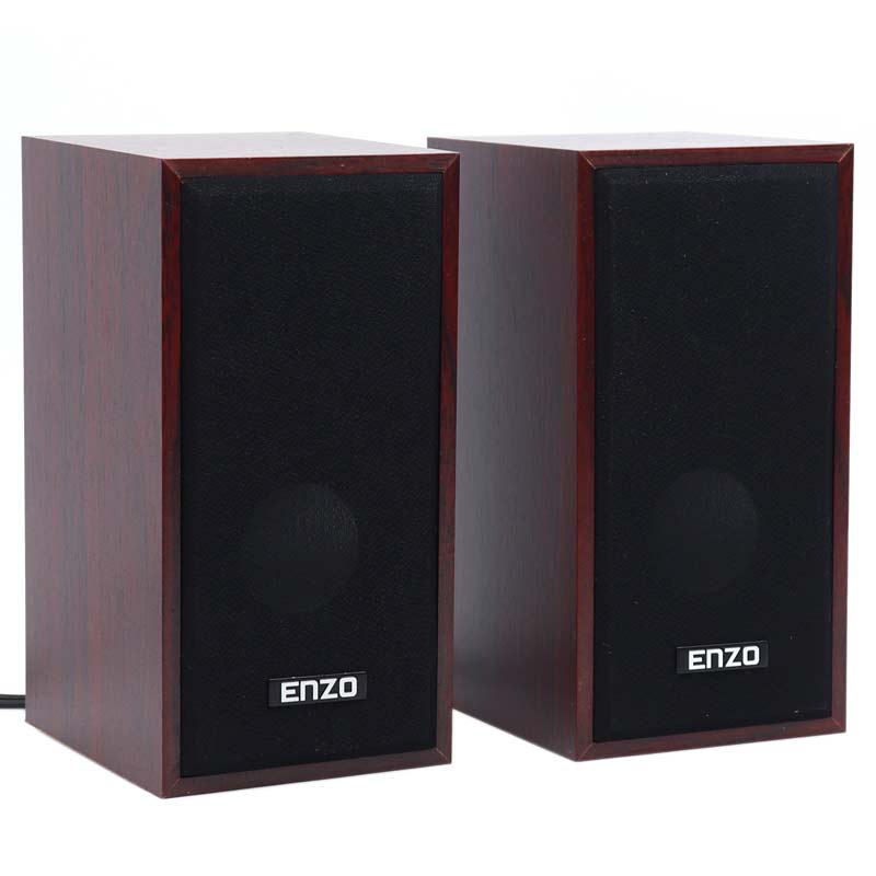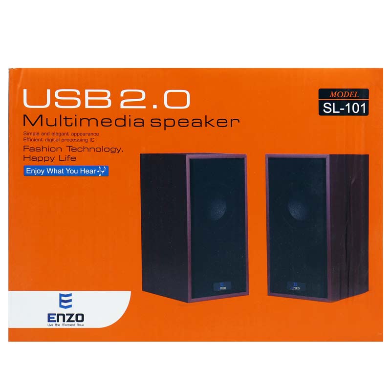 اسپیکر 2 تکه برند ENZO مدل SL-101 یک بلندگوی دو تکه باکیفیت از برند انزو میباشد که از طریق پورت USB و جک 3.5 میلیمتری به سیستم شما متصل میشود. جنس بدنه این اسپیکر از چوب باکیفیت است که بسیار مقاوم در برابر ضربه است. این اسپیکر جمعوجور بسیار مناسب برای لپتاپ است و قدرت صدای بالایی دارد که شما میتوانید از شنیدن موسیقی لذت ببرید. سبک و کموزن بودن این محصول از ویژگیهای خوب این محصول است. بر روی کابل بلندگوی SL-101 دکمهای برای کم و زیاد کردن صدا تعبیه شده است.