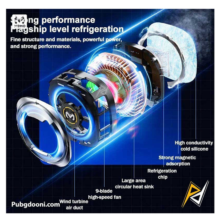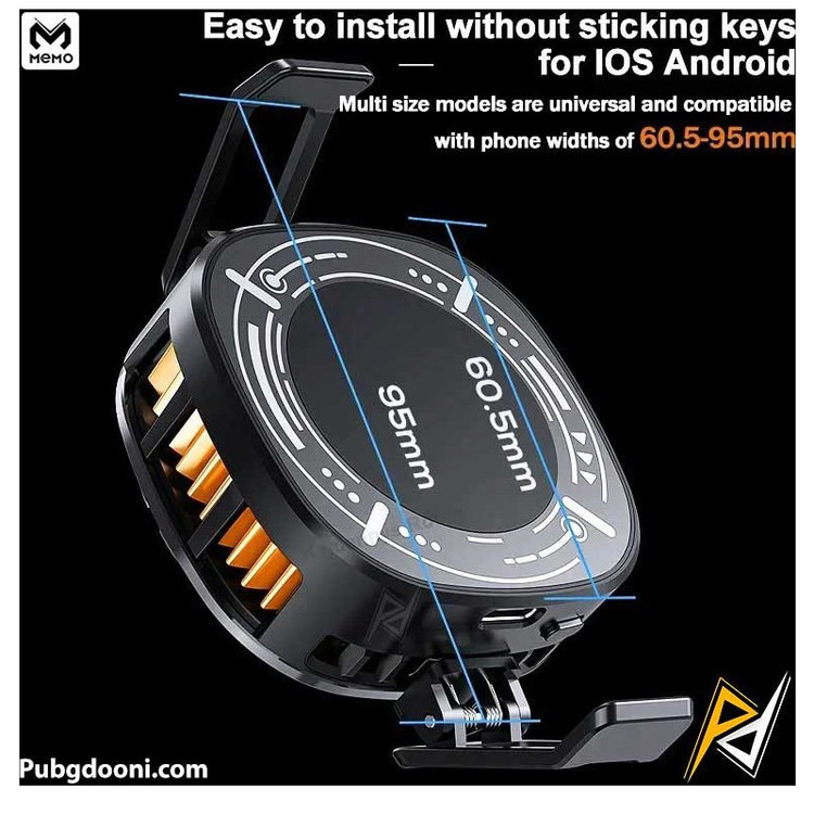 فن خنککننده انجمادی گوشی موبایل ممو مدل CX06، با بهره مندی از تکنولوژی یخچال نیمه هادی و هیت سینک رادیاتوری و مجهز به فن خنک کننده مغناطیسی به نحوی طراحی شده که در حین انجام کارهای سنگین و بازی هایی مانند کال آف دیوتی call of duty و پابجی PUBG خیال شما را از دمای گوشی موبایل تلفن همراهتان راحت کند. این فن خنک کننده هم مجهز به مگ سیف برای گوشی های دارای این قابلیت بوده و هم دارای صفحه فلزی دایره ای برچسب دار برای اتصال به گوشیها و تبلتهای بدون مگ سیف است همچنین این محصول دارای کلیپس هایی با لبه سیلیکونی و نرم است که به شما اجازه استفاده از آن برای هر مدل گوشی و تبلت را میدهد. این فن قدرتمند توسط کابل و شارژر 15 وات (آداپتور 5v-3a) خنک کنندگی بی نظیری برای حفاظت از گوشی شما بوجود میآورد. سرعت چرخش فن بیصدای آن 6000 دور در دقیق بوده و از RGB رنگارنگ حین استفاده بهره میبرد همچنین دارای دکمه تنظیم سه سطح قرت خنک کنندگی و روشن خاموش حین استفاده است. پک این محصول شامل یک دستگاه خنک کننده انجمادی CX06 به همراه کابل اتصال، صفحه مغناطیسی برچسبی و دو عدد کلیپس اتصال میباشد.